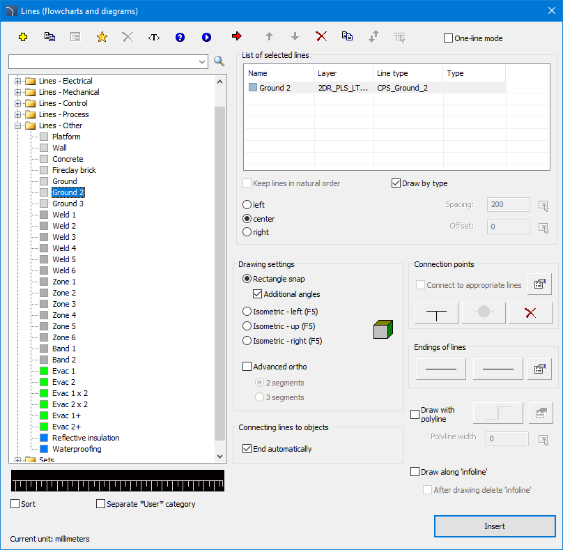 The Lines (flowcharts and diagrams) command allows to draw block diagrams lines in a convenient way.
