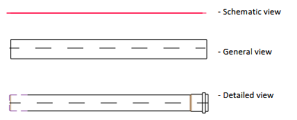 In the CADprofi program it is possible to draw pipes in schematic, general or detailed views.