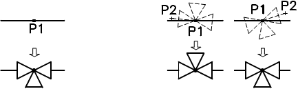 The Into point option may be used when it is necessary to insert the symbol in a point that lies on a line, but in such a way that the symbol won't "adjust itself to the line". In this option, the inserted symbol "ignores" the line, so it does not break it and it does not take angle from it. This option is used in many situations for example when inserting sensors, which usually need to touch lines.
