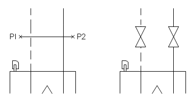 The Pick symbol option is available in the Multisymbols and Ventilation - Multisymbols. After selecting this option, program will hide the dialog window and enable selection of symbols that will be copied (e.g. P1, P2, P3). Symbols will be copied in the same order that they were selected in the drawing. It is possible to select a single symbol repeatedly. After the selection of symbols is done, press the Enter key (or right mouse button). The dialog window will be displayed again, in which user will be able to freely specify all options related to insertion of copied symbols. The process of inserting these symbols is the same as for the symbols selected from CADprofi libraries (e.g. inserting into a point or in a line - P4, P5)