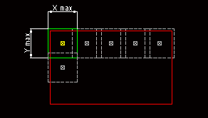 Regular placement by offset (X, Y, max or D max) - a mode in which the number of columns and rows of the distribution will be selected so that it does not exceed the specified values of XY spacing or R radius. This option is recommended when the placed element has an operating range (e.g. a sensor).