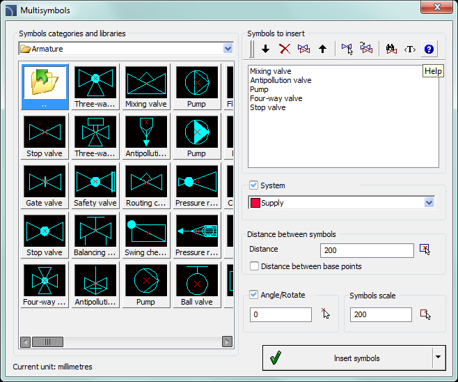 10. Click the Insert symbol button in order to specify the multisymbols insertion point.