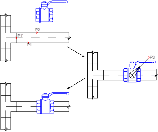 •Insert reducer - automatic insertion of a reducer. This option is used when inserting and object into an existing line if the object nominal diameter is different from the line diameter.