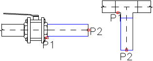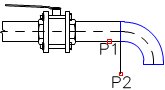 1. Indicate an element to which you would like to connect a fitting (P1). 2. Specify the fitting insertion direction (P2). |
