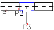 1. Indicate in line in which you would like to insert a tee-piece (P1). 2. Specify the fitting insertion point (P2). 3. Specify the tee-piece direction (ramification) (P3). |