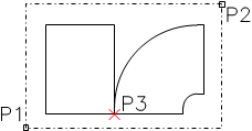 After pressing the OK button, select the elements that belong to the defined fitting (P1-P2) and specify the fitting base point (P3). When the fitting is being defined it is also automatically inserted on a layer that belongs to the selected installation. |