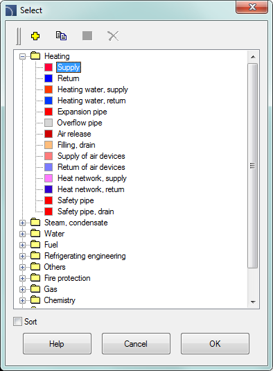 2. In the Pipes\Ducts - general views from the list of available categories select the Pipe from the Piping\heating category or Pipe flex from the Pipe flex category.