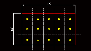 Regular placement by quantity nX, nY - mode in which user specifies the number of columns and rows, the distances between elements will be calculated based on these parameters.
