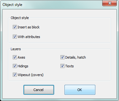 •Insert (specify style for object) - inserts selected object with a possibility to change options in the Object style dialog window.