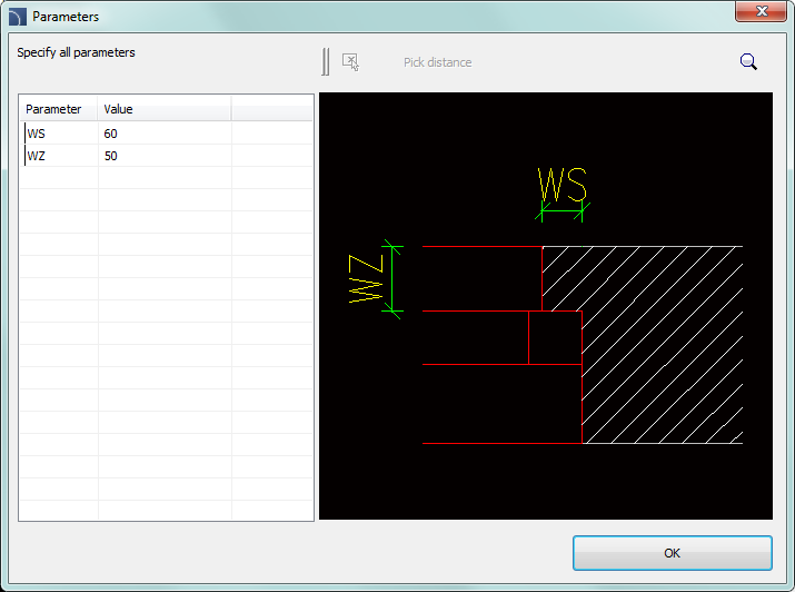 Hint By default, in the "Parameters" window displays the dimensions of the object selected in the command main dialog window. |