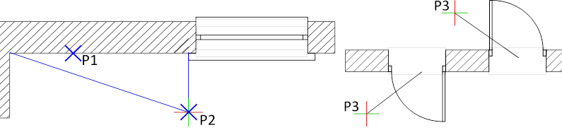 10. (Optional) During the insertion of doors on projections indicate the P3 point that defines the block insertion side.
