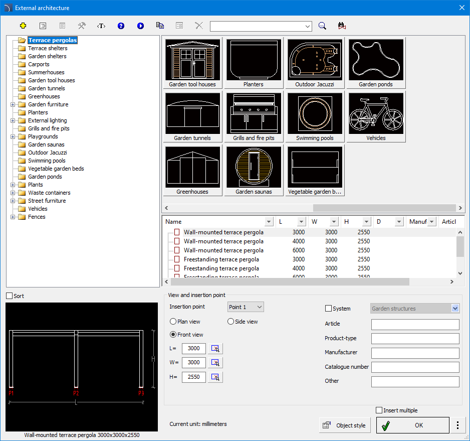 garden houses, garden greenhouses and pergolas. This command also contains