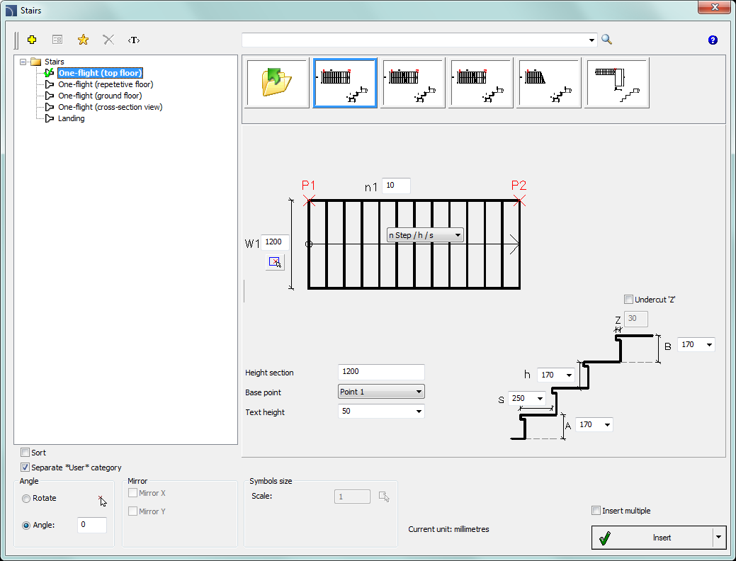 4. In the preview window specify parameters for stairs that are going to be inserted.
