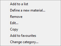 Pop-up menu - options menu for selected element/category which is available by clicking the right mouse button. Commands included in the menu are similar to the commands available on the dialog window toolbars. |