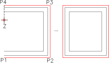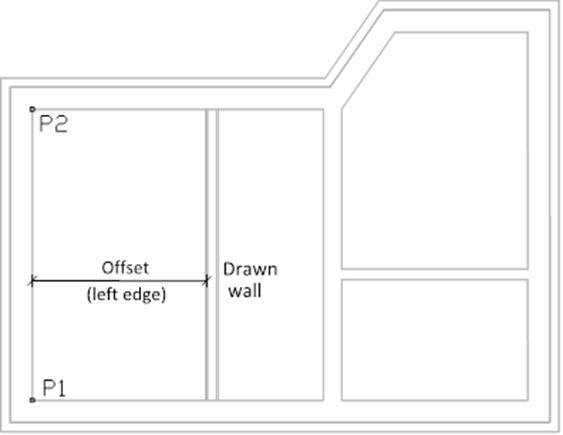 6. Specify the starting and the end points (P1, P2). The wall will be drawn with a specified distance from the indicated points.