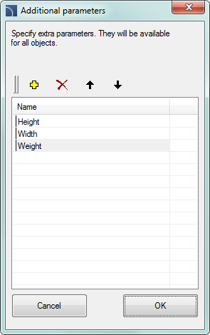 Additional parameters - this button opens a new window of additional parameters, that are defined by the user.