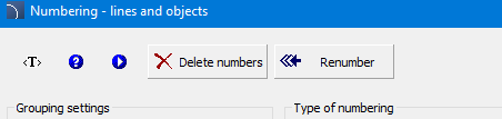 When numbering objects, additional information about the numbers is saved in their internal data. Deleting only the visible designation with the number from the drawing does not delete the internal numbering data from the object. For this reason, the Delete numbers command should be used to delete numbers from objects. After activating the number deletion mode, select the desired objects or numbers. This deletes both the internal numbering information and the number texts and leader lines.