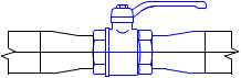 Threaded valve with a nominal diameter smaller than the line diameter with the Insert reducer option enabled (automatic reducer insertion).