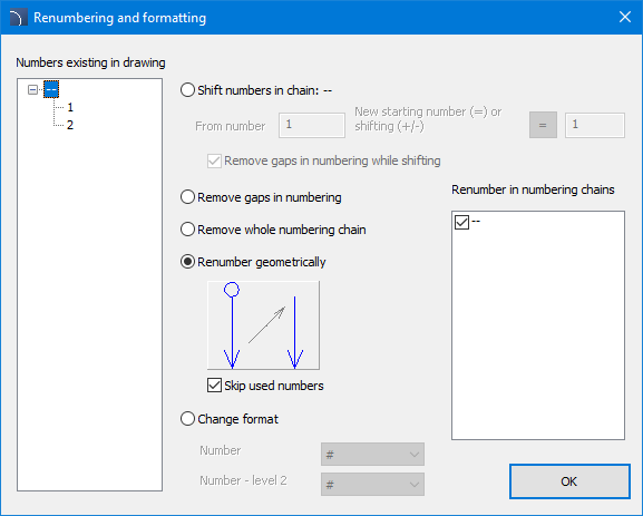 4. Select the Renumber option in the dialog box. If necessary, select the items to be renumbered from the selection list.