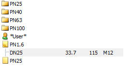 User types of series are created on the basis of copies of existing library elements. All copied positions are visible in the *User* category. Renaming the type of series in its new position will move it to the appropriate folder. |