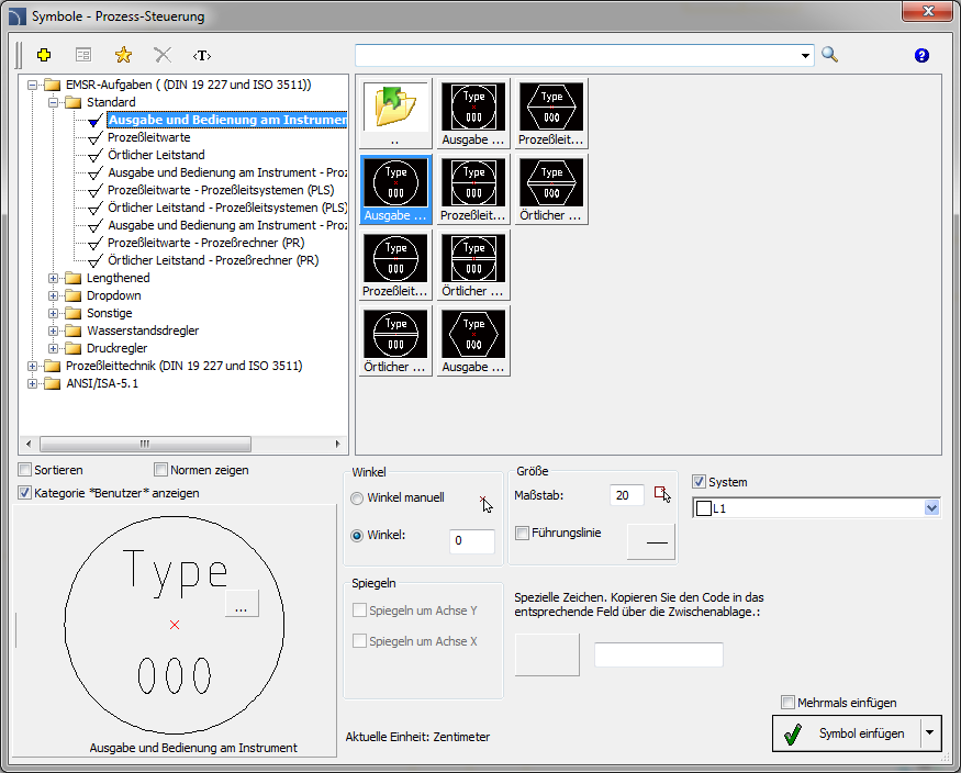 Aufruf des Befehls Symbole – Prozess-Steuerung