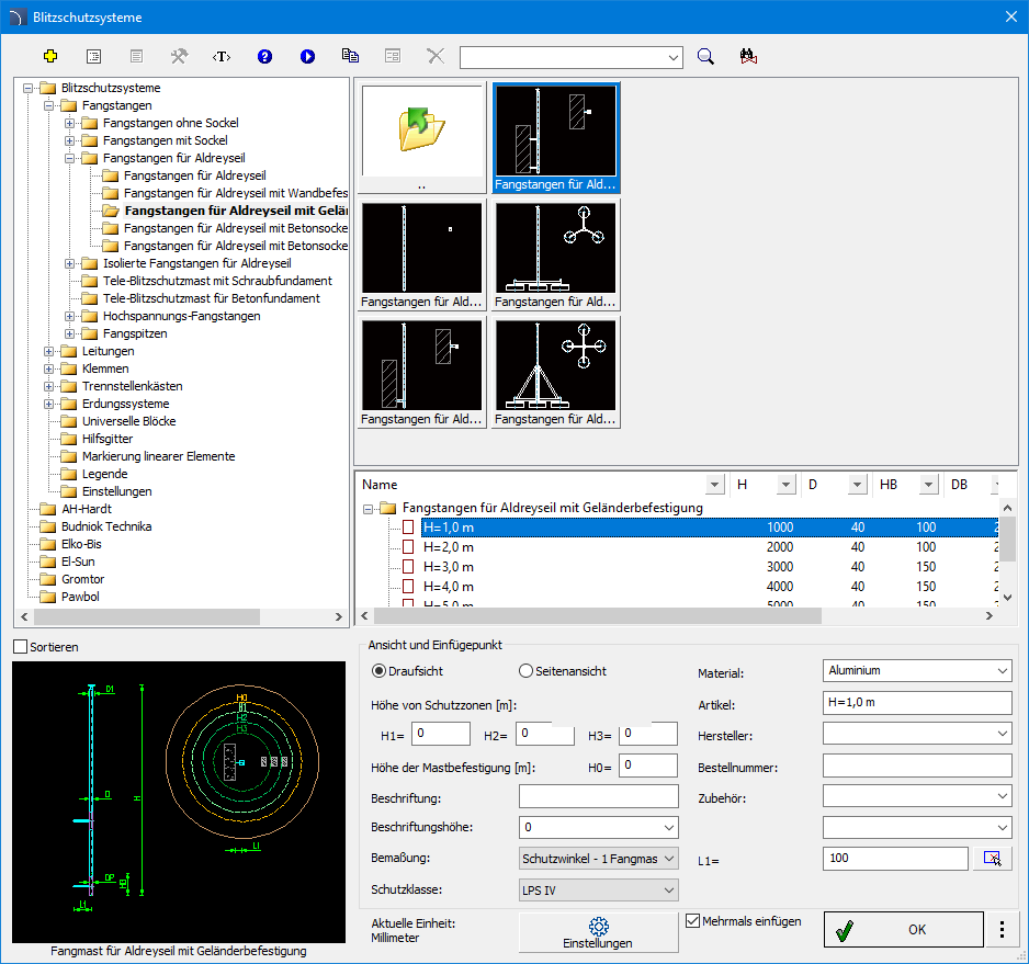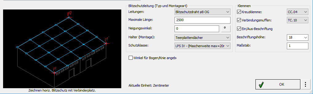 Dialogfenster Blitzschutzsysteme.