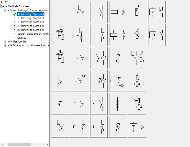 Der Befehl „Schema-Vorlagen“ enthält vordefinierte elektrische Schemata, die zur Erstellung typischer Schemata verwendet werden können. Es stehen Direktstart von 3-Phasen-Motoren, Umkehrsysteme, Stern-Dreieck-Start und viele weitere Schemata zur Verfügung.