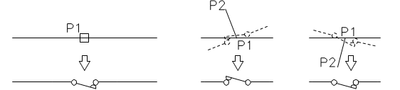 Die Option Punkt kann genutzt werden, wenn es notwendig ist das Symbol an einem Punkt einzufügen, der auf einer Leitung liegt, doch ohne dass das Symbol “an der Leitung ausgerichtet” wird. Bei dieser Option “ignoriert” das eingefügte Symbol die Leitung, so dass es die Leitung nicht aufbricht und nicht den Winkel übernimmt. Diese Option wird in vielen Situationen, zum Beispiel beim Einfügen von Sensoren (die in der Regel die Leitungen nur berühren müssen), verwendet.