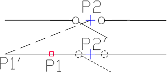 5. Das Programm bestimmt den Punkt am Anfang der Leitung (P1’). Geben Sie den Versatz vom Punkt an oder den Einfügepunkt, den Sie für das eingefügte Element festlegen wollen (P2).