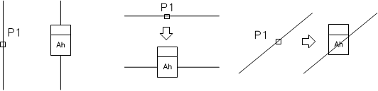 In dem Fall, dass der Nutzer die Option Winkel manuell gewählt hat, ist es möglich die Symboldrehung relativ zur Linie anzugeben. Diese Option ist sehr praktisch, wenn Symbole eingefügt werden, die die Leitungsrichtung, Griffposition oder Durchflussrichtung usw. bestimmen. Der Winkel des Symbols hängt von der Lage des Punkts P2 ab.