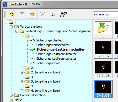 Es ist möglich Unterkategorien mit bestimmten Themen zu erzeugen, so wie eigene Kategorien für Symbole, die im Entwurf von Lichtanlagen, Antennenanlagen und anderen genutzt werden können. Darüber hinaus kann ein Element in viele verschiedene Unterkategorien hinzugefügt werden.