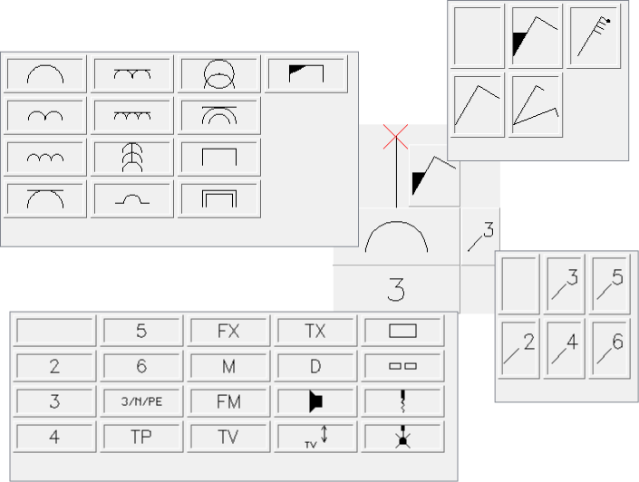 CADprofi-Symbole haben bestimmte Eigenschaften, die sich auf "intelligente" Art und Weise verhalten, zum Beispiel automatisches Einsetzen im passenden Winkel zur Linie, die Linie am Einfügepunkt automatisch brechen, zuordnen zum Layer je nach Art der Installation usw.