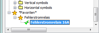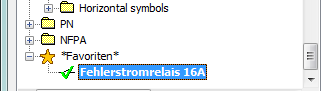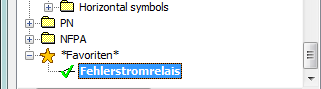 CADprofi verfügt über mehrere tausend Symbole, die in entsprechende Kategorien eingeordnet sind. Durch die große Anzahl ist es manchmal schwer, das im Moment benötigte Symbol zu finden. Andererseits ist es gewöhnlich nicht erforderlich, an einem bestimmten Projekt, mit mehr als einigen Dutzend Symbolen zu arbeiten. Um die Arbeit zu beschleunigen kann der Benutzer ausgewählte Elemente der Kategorie *Favoriten* hinzufügen, um einen schnelleren Zugang zu ihnen zu bekommen.