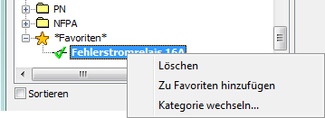 Für Elemente, die der Kategorie *Favoriten* zugeordnet sind, ist es möglich, den Namen zu ändern, der später in Stücklisten, Legenden und Beschriftungen verwendet wird.