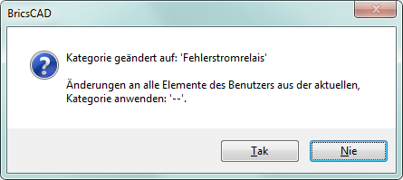 Ändern der Kategorie vieler Symbole Wenn Benutzer ein Symbol in seiner Ursprungs-Kategorie bearbeitet, in der es mehrere Symbole gibt, dann ändert CADprofi auf Wunsch die Kategorie für alle Symbole. |