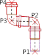 Die Auswahl der Bögen wird automatisch so durchgeführt, dass sie den Vorstellungen des Nutzers am besten entspricht. Nach Wahl von aufeinander folgenden Punkten durch den Anwender, sucht die Datenbank den Bogen mit dem nächst möglichen Winkel aus. Falls erforderlich, werden die Längen der gezeichneten Rohrabschnitte automatisch korrigiert. |