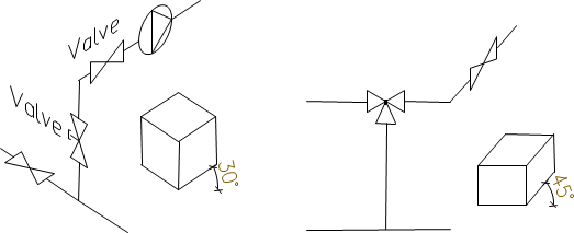 CADprofi kann Schaltpläne sowohl in isometrischer als auch dimetrischer Ansicht in jedem beliebigen Winkel erstellen. Durch Aktivieren der isometrischen Ansicht während der Objekt-einfügung neigt sich das Symbol automatisch entsprechend dem eingestellten Winkel.