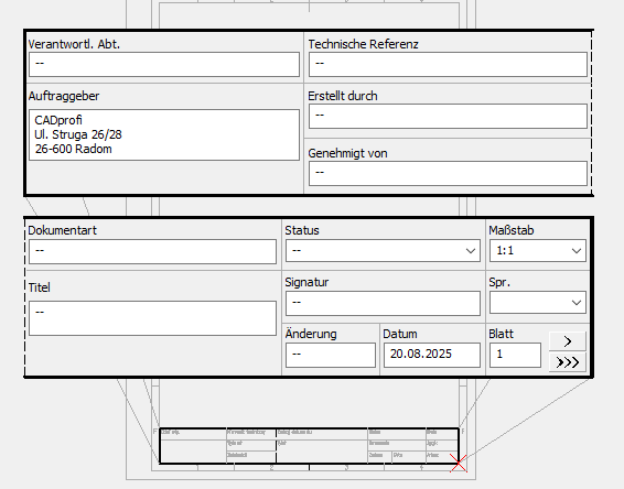 Die Planköpfe im CADprofi können bearbeitet werden (Blockattribute). Damit die Benutzer Planköpfe die gleiche Funktionalität aufweisen ist es notwendig, die entsprechenden Attributdefinitionen in die Tabellen einzubinden. Ein geeigneter Weg dafür ist einen vorhandenen Plankopf einzufügen, zu explodieren, zu bearbeiten und danach als Benutzerblock hinzuzufügen. Wie benutzerdefinierte Elemente erzeugt werden können ist im Kapitel Benutzerblöcke definieren).