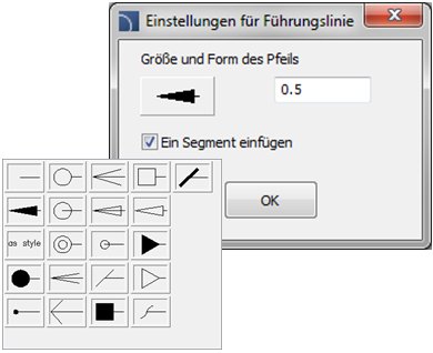 •Pfeilform – Symbol, das am Startpunkt der Führungslinie eingefügt wird.