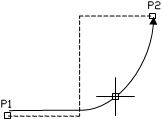 Wichtiger Hinweis Der erweiterte Orthomodus steht nicht in allen CAD-Programmen zur Verfügung. Das erste gezeichnete Segment kann vertikal oder horizontal sein je nachdem, welche Art der Mausbewegung nach Auswahl des ersten Punktes (P1) der gezeichneten Linie durchgeführt wird.