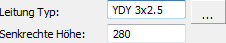 (Länge des vertikalen Liniensegments) angeben. Der Leitungstyp kann aus den Listen durch