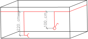 Anmerkung Durch die Kombination von Zeichenkante und Versatz kann der Anwender die Leitungen entlang der Objekte führen, die bereits in der Zeichnung eingesetzt sind; z.B. Wände. |