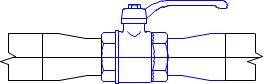 Gewindearmatur mit Nenndurchmesser größer als der Leitungsdurchmesser mit eingeschalteter Option Übergang einfügen (automatische Übergangseinfügung).