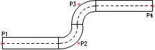 Beim Zeichnen mit Versatz wird der Leitungszug mit einem Abstand von den gezeigten Punkten gezeichnet.