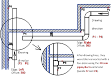 Ein Beispiel für das Zeichnen von Leitungen entlang der Wände mit einem Versatz: