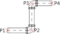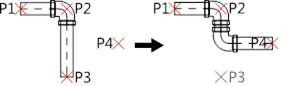 Beim Zeichnen von Leitungszügen werden nur Bögen, die in der Datenbank vorhanden sind, eingefügt. Dadurch kann es vorkommen dass das Programm die Länge der eingefügten Rohrabschnitte so korrigiert, dass sie mit Standardwinkel (meist sind nur 45 °- und 90 °-Bögen vorhanden) gezeichnet werden. Automatische Korrektur von Abschnittslängen bei Angabe aufeinanderfolgender Punkte: