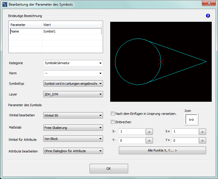 Parameter des Symbols – Einstellung, wie sich der Block während des Einfügens verhält.