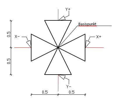 des Symbols am Einfügepunkt. Anschlusspunkte werden in den Feldern X–, X+ und Y-, Y+ definiert. In diesen