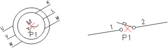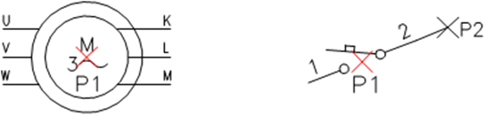 Inserting symbols into lines will automatically interrupt them in the insertion point, while maintaining the principles of creating schematic drawings. This rule also applies to multipole apparatus, but in this case, user has to match the line to the type and scale of multipolar symbols.
