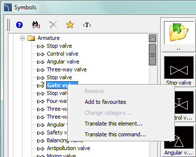 In case of translating the command in the table only the texts that have been used by program during the command execution will be available. Because of that it is recommended to use all options that are available in the command before pressing the Translate command option. Thanks to this the translation system will record all text and will make them available for editing. It should be noted that some texts associated with the command are only available after user closes the dialog window (e.g. after insertion of selected symbols into the drawing). These texts will be also recorded and made available for editing, but only when user runs the command once again.